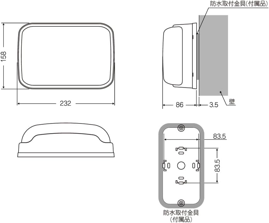 外形寸法(W×H×D):232×158×86mm