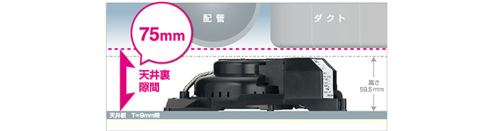 天井裏必要最低高さ:75mm