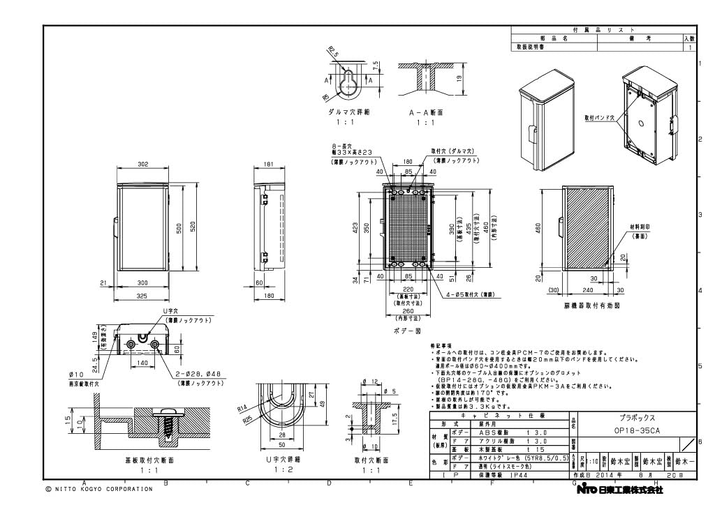 日東 OP18-35CA プラボックス 透明扉 屋根付き