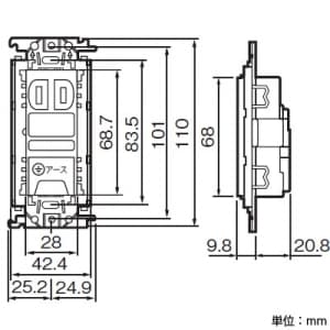品名:埋込抜け止め接地ダブルコンセント(金属枠付)(ホワイト)