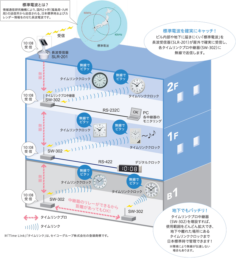 *タイムリンクプロ中継器(SW-302)から送信される無線のみを受信します。